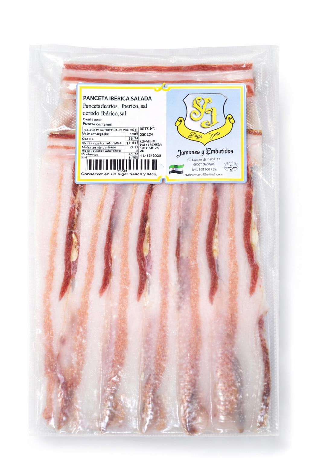 Panceta ibérica salada y curada de forma tradicional, loncheada y envasada al vacío
